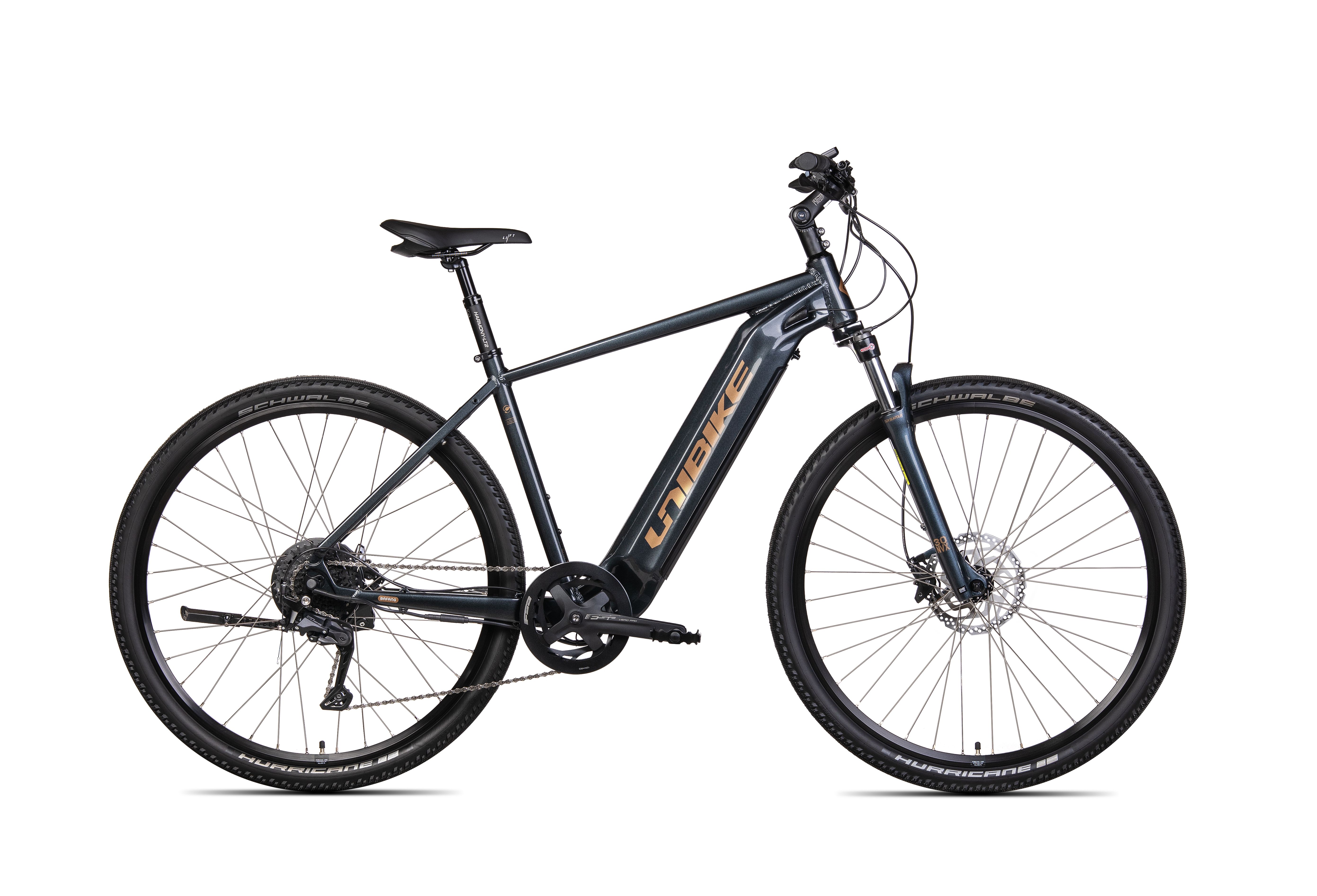 Unibike Falcon GTS este o bicicletă electrică modernă, concepută pentru utilizatorii care apreciază confortul și funcționalitatea. Echipată cu un motor Bafang cu o putere de 250 W și un cuplu de 45 Nm. Bateria integrată cu o capacitate de 730 Wh vă permite să parcurgeți distanțe lungi fără a vă face griji cu privire la încărcarea frecventă. Transmisia bazată pe sistemul Shimano CUES cu 9 trepte garantează schimbări line și precise ale vitezelor, adaptându-se la diverse condiții de teren.